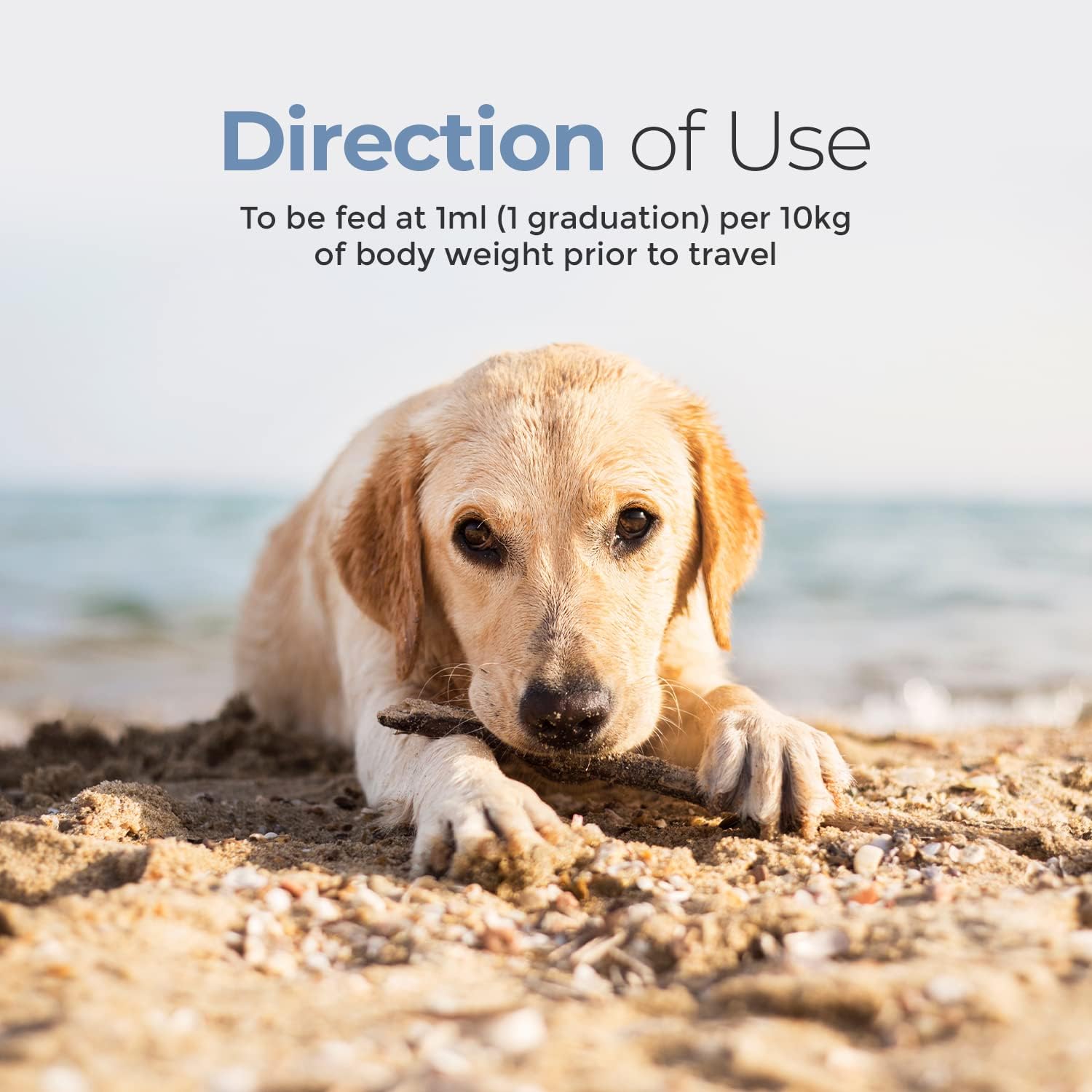 Directions for use: To be fed at 1ml (1 graduation) per 10kg of body weight prior to travel