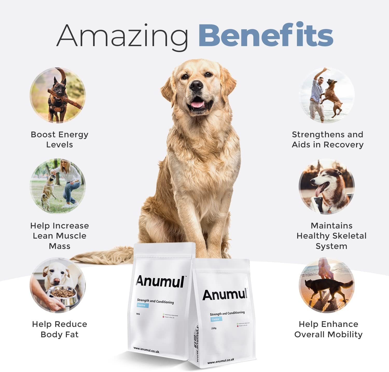 Including Anumul Strength and Conditioning in the diet will help ensure the development of healthy muscle is supported, while maintaining a healthy skeletal system to help support your dogs wellbeing.